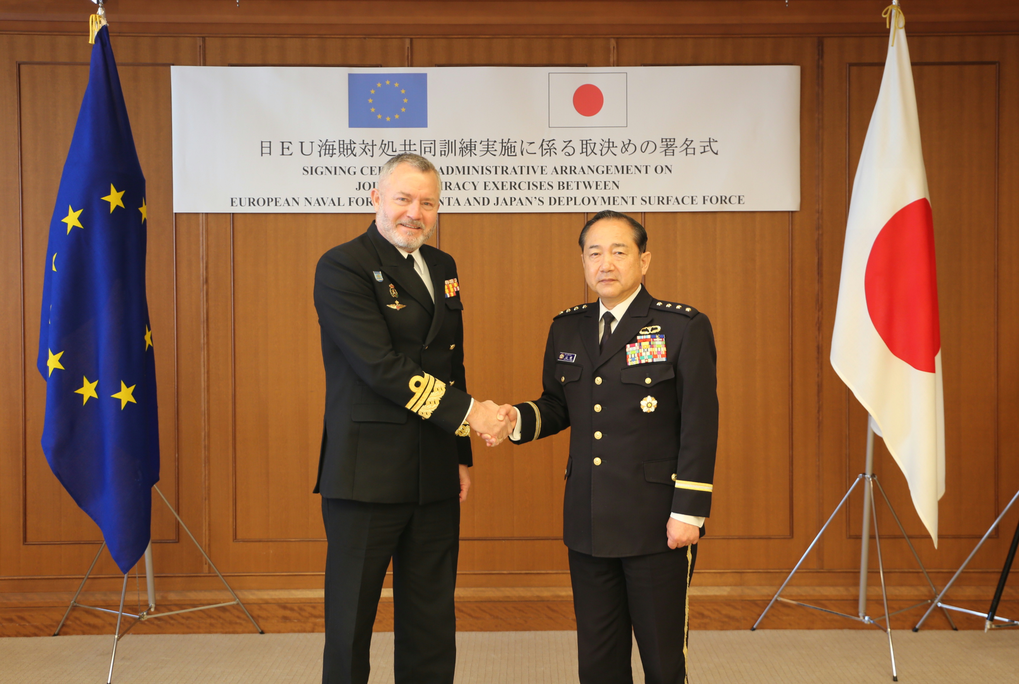 Also, in a move aimed at further facilitating joint naval activities between the European Union (EU) and Japan, EU NAVFOR OPCDR and General Koji Yamazaki, Chief of Staff, Joint Staff of Japan’s Self-Defence Forces, signed in Tokyo on 15 March a new Administrative Arrangement for communication and coordination on joint anti-piracy exercises. This agreement is a new landmark in the excellent relations between Japan and the EU.