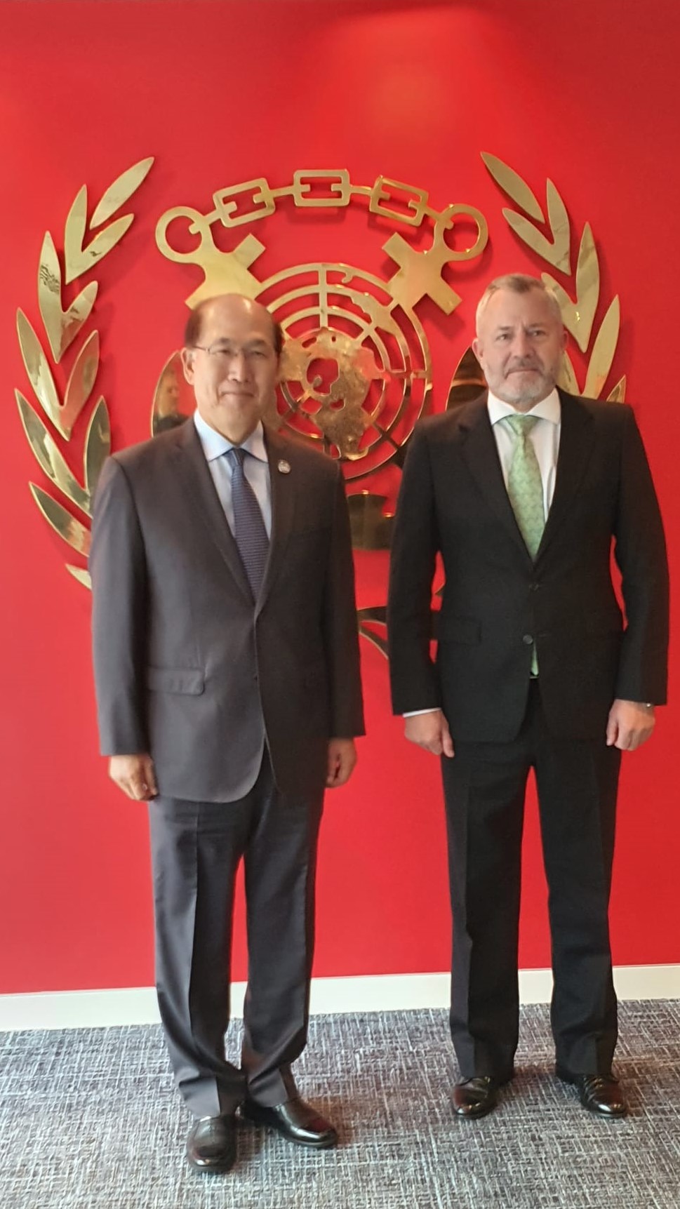 On 2 February, EUNAVFOR Operation ATALANTA Commander (OpCdr), Vice Admiral Núñez Torrente met Secretary General of the International Maritime Organization (IMO) Mr. Kitack Lim, at IMO Headquarters in London (UK). Atalanta’s OpCdr had the opportunity to present the renewed mandate of ATALANTA and underline the undoubted commitment of ATALANTA to freedom of navigation in its Area of Operations. In the context of the removal of the High Risk Area (HRA) by the Shipping Industry, both agreed on the need to encourage all merchant vessels transiting the Western Indian Ocean to comply with BMP 5 and register with MSCHOA's voluntary registration scheme (VRS), as the best way to ensure the security of navigation and immediate assistance in case of need.