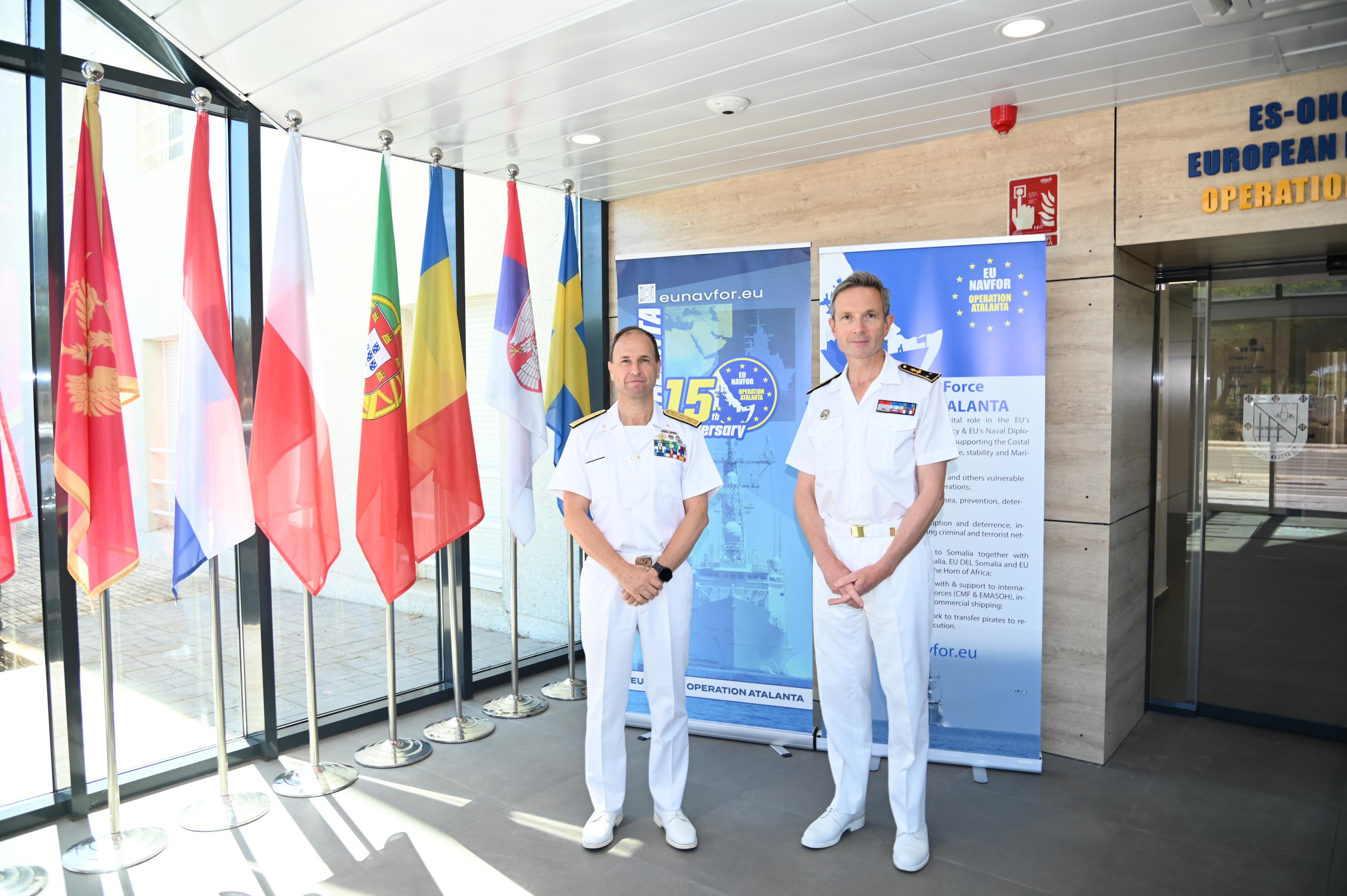 The Operation Commander Vice Admiral Ignacio Villanueva Serrano congratulated Deputy Commander Dousson for his outstanding contribution, commitment and friendship and expressed his best wishes for professional and personal success. In addition, Vice Admiral Villanueva warmly welcomed Rear Admiral Domenico Guglielmi as the new Deputy Commander, highlighting his extraordinary experience and outstanding professional skills.