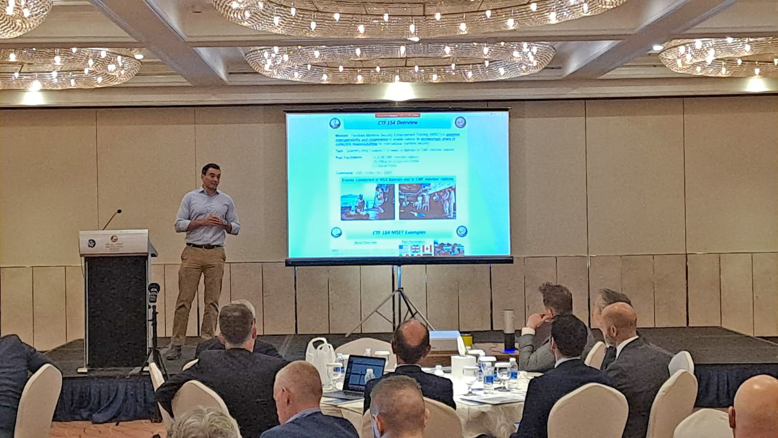 The second day of the 51st SHADE forum was focused on capacity building and enhancement efforts. Commander Carlos Carrasco, from EUNAVFOR, introduced the workshop and presented the capacity building activities carried out by Operation ATALANTA, highlighting the ALDABRA II exercise conducted in Seychelles from 18 to 23 September 2023. Lieutenant Commander Alec Emmert, from CMF, introduced the Combined Task Force (CTF) 154 that has the Maritime Security Enhancement Training (MSET) mission. He spoke about Exercise NORTHERN READINESS (NR)/ SOUTHERN READINESS (SR) and ALDABRA II exercises as outstanding success examples of synergies achieved by both CMF and ATALANTA.