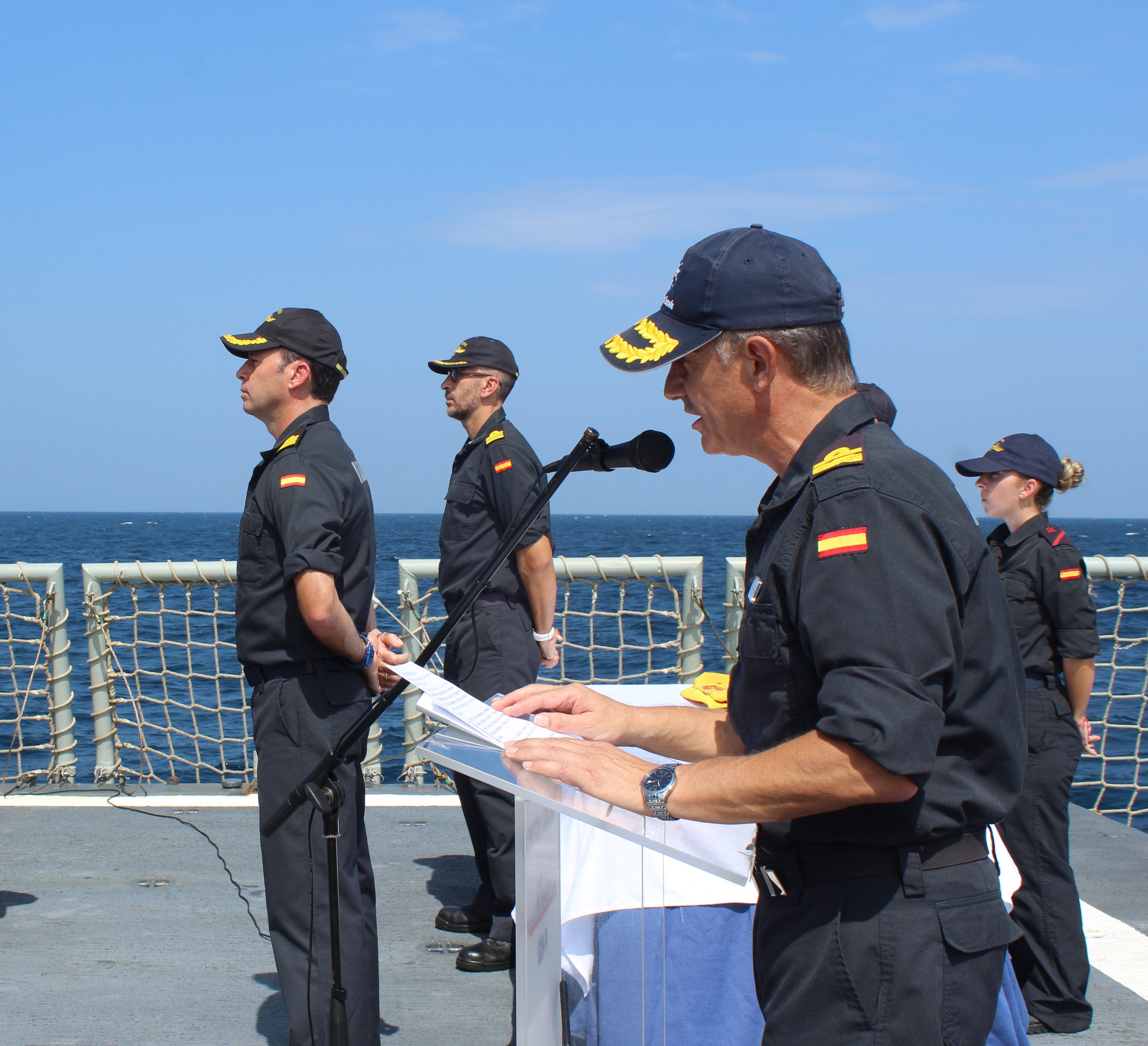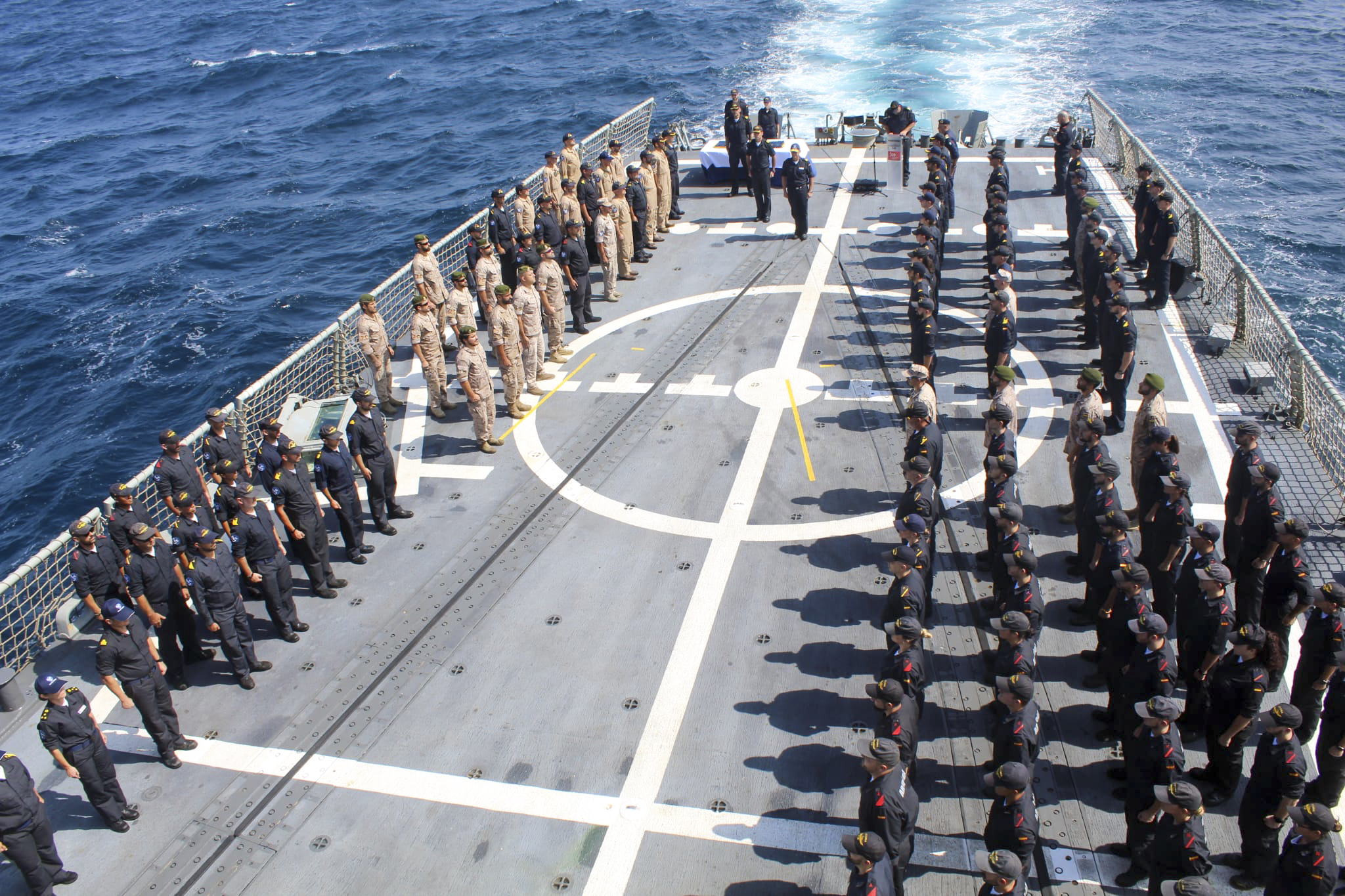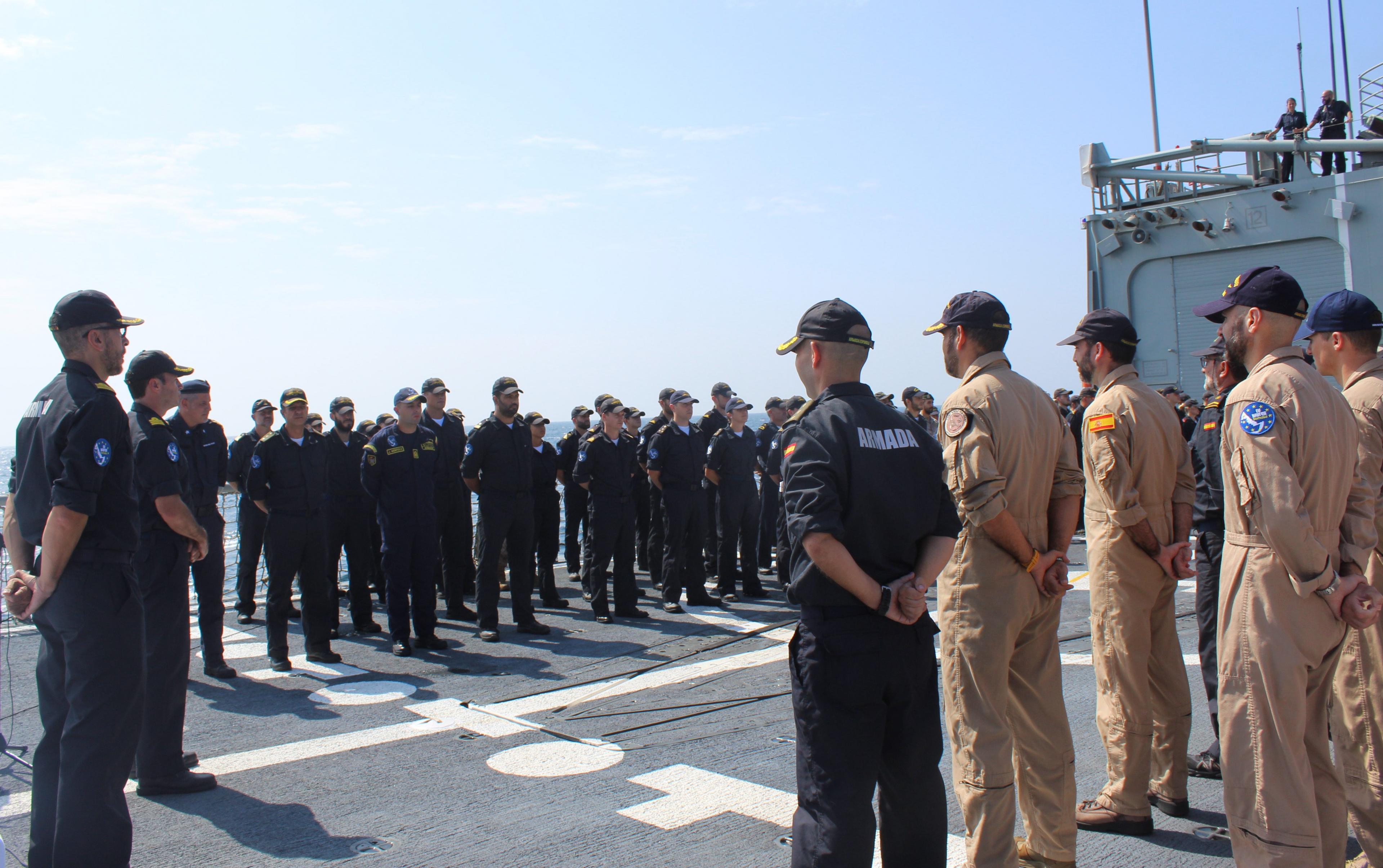 Rear Admiral Cuerda concluded his speech by thanking all sailors and marines for their efforts in helping to keep the seas off the coast of Somalia safer for seafarers. He reminded them that regardless of their rank or position within the taskforce, they were of equal importance when ensuring the freedom of navigation for thousands of mariners, as well as in the support the Operation was giving to the Somali people, who are dependent on the safe delivery of World Food Programme aid from the sea.