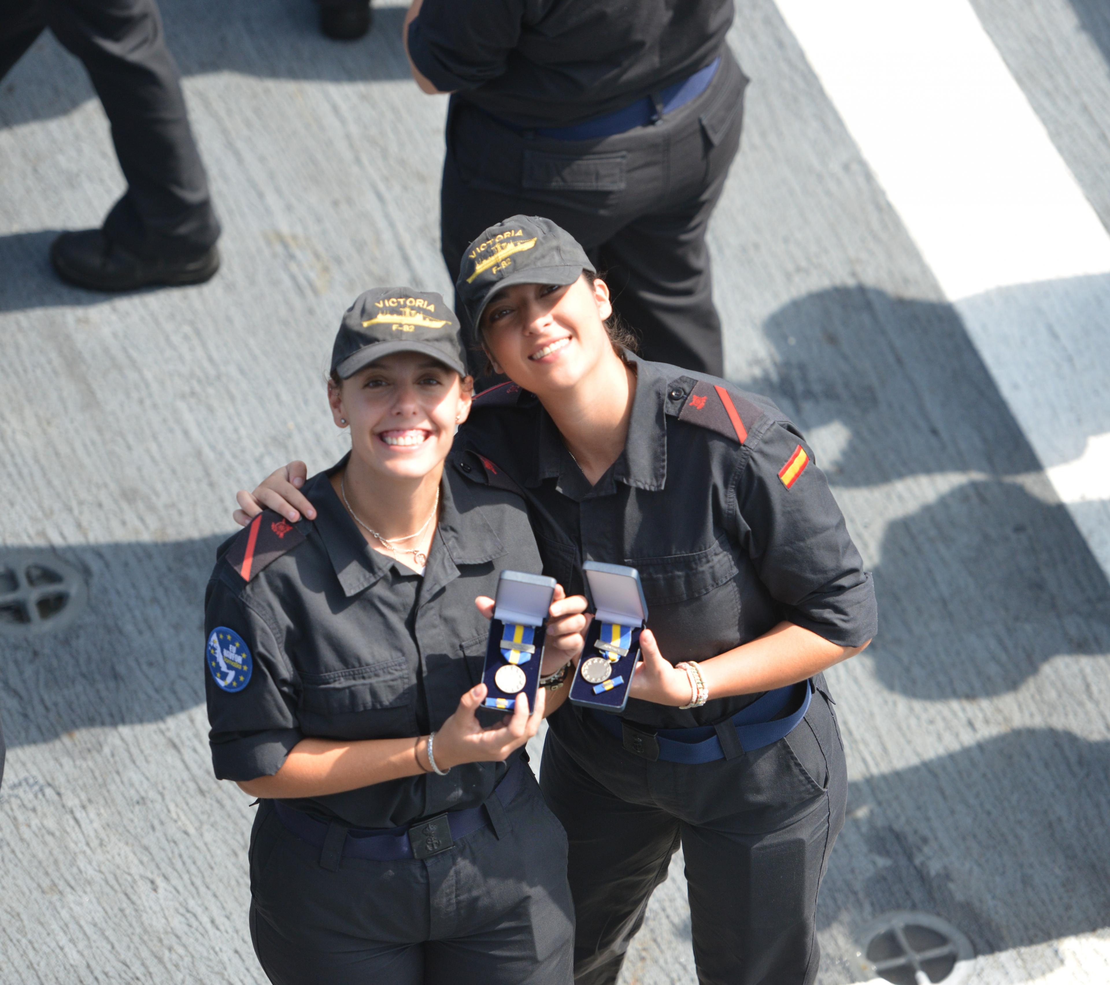 On Tuesday, 14th December 2021, in Djibouti, EU NAVFOR Force Commander, Rear Admiral (L.H.) Alejandro Cuerda handed back command of Operation Atalanta Forces to the Operation Commander, Vice Admiral José M. Núñez Torrente. A farewell ceremony was held on board ESPS Victoria, presided by the Force Commander and the Commanding Officer of the ‘Victoria’, Commander Rafael Mira Calvo, to award FHQ staff and crew members with the Common Security and Defence Policy (CSDP) Service Medal. This European military decoration is awarded to personnel of the European Union Naval Force Somalia Operation Atalanta for their effort and commitment to contribute to maritime security in the Indian Ocean.