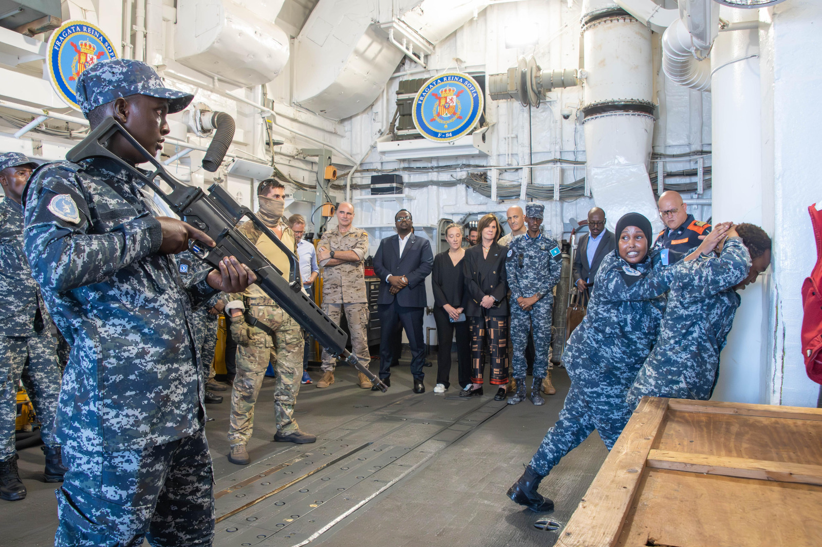 • H.E. Salah Ahmed Jama, Deputy Prime Minister of the Federal Republic of Somalia, visited the ATALANTA frigate ESPS Reina Sofia to discuss about maritime security and learn about the training conducted to the Somali Police Force - Department of Coast Guard.